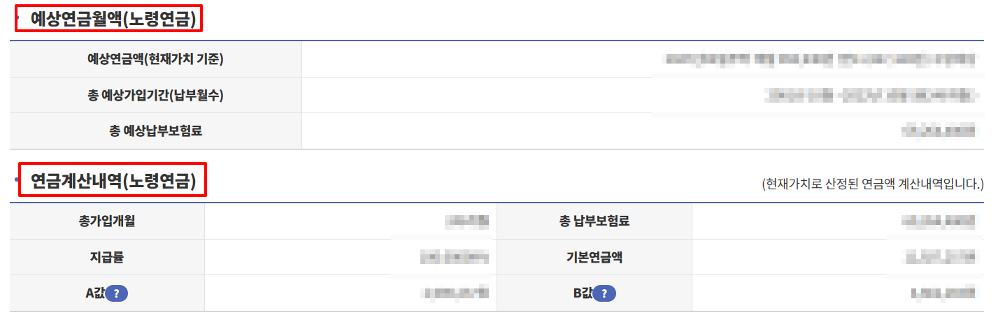 예산연금월액(노령연금) , 연금 계산 내역을 확인 하실 수 있습니다.